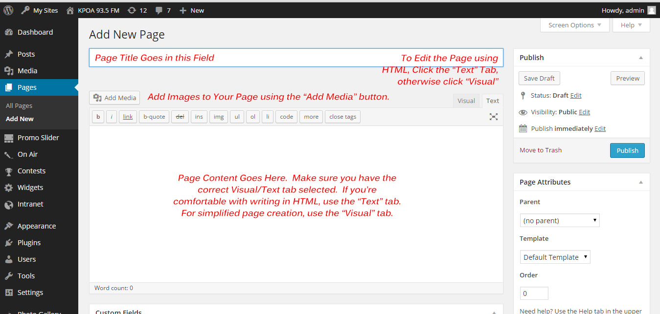 If you want your page to display in the menu bar, view the “Editing Navigation Menu” section.