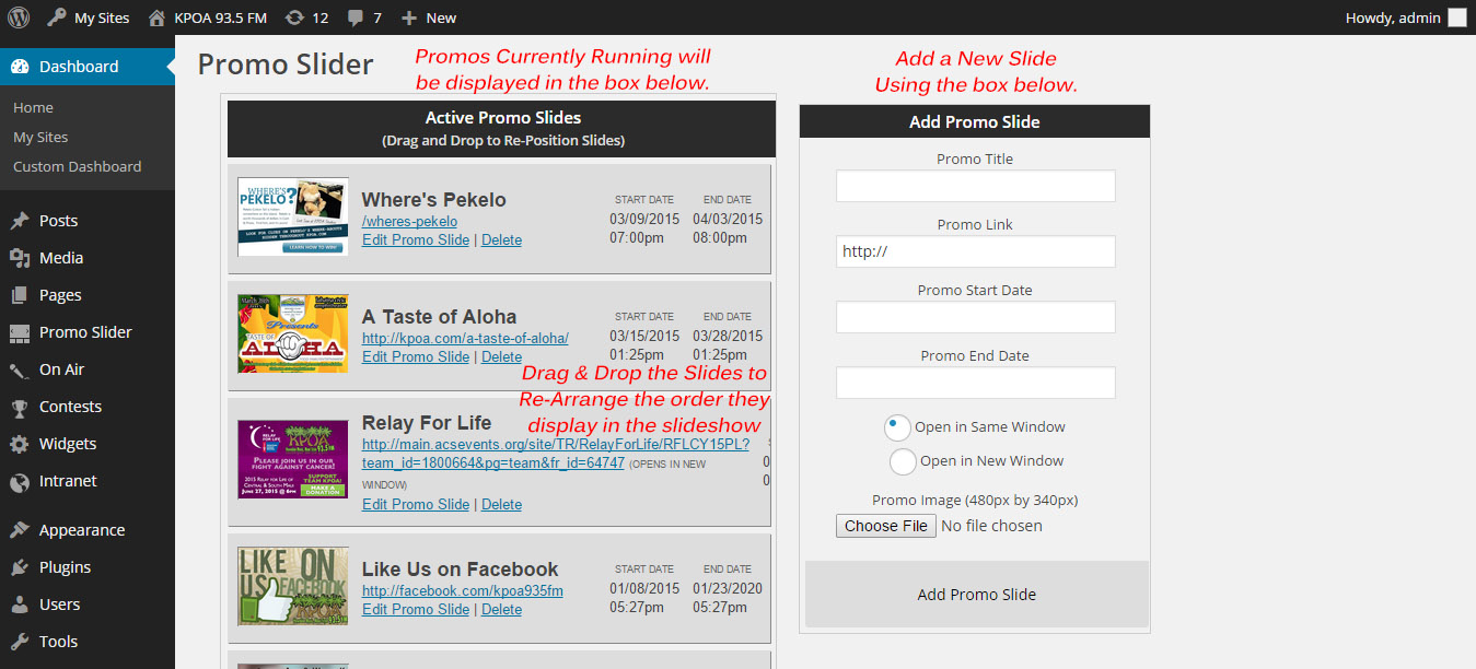 To add or modify slides in the promo slider, click “Edit Promo Slider”