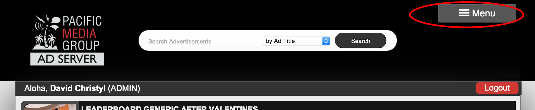 To login to the PMG Ad Server, go to http://adserver.pmghawaii.com . You will login with your intranet credentials. * Only users with administrative privileges can use the Ad Server.